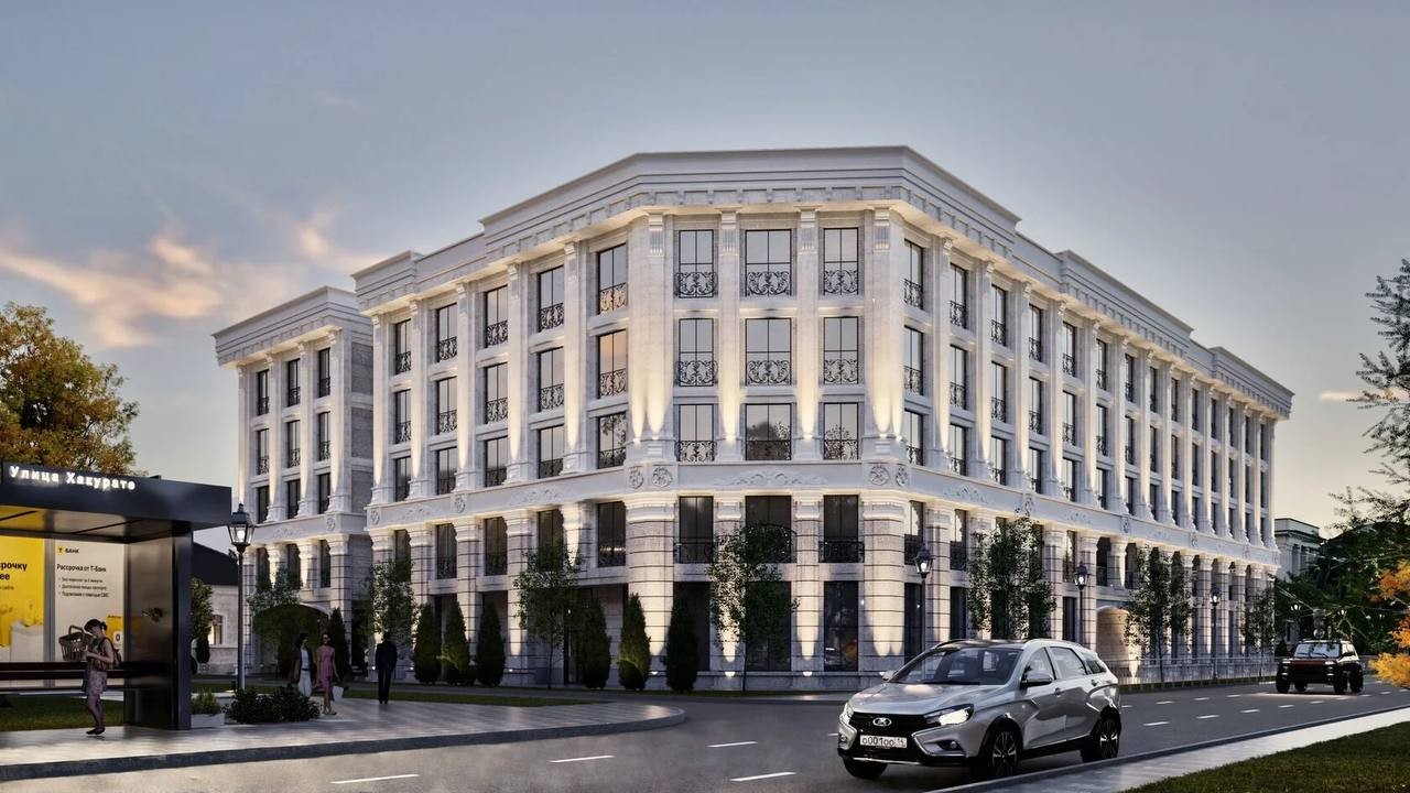 Проект сочетает классическую композицию и современную архитектуру: чёткую геометрию объёмов, контраст материалов и панорамное остекление. Пространства здания ориентированы на комфорт гостей и взаимодействие с городской средой